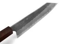 Diese Messerserie ist schon durch Ihre Herkunft, der Schmiede Nigara, etwas ganz Besonderes. Optisch ist sie durch das hell Finishing des Oberteils der Klinge und das markante, von Hand geschlagene Hammering geprägt. Den ganzen Charakter der Messer erfährt man aber erst, wenn man sie in seiner Küche einsetzt. Die Messer haben eine sehr gute, ausgewogene Gewichtsverteilung, sind dünn ausgeschmiedet und sehr scharf. Der harte Stahl des Schneidkerns, geschmiedet auf ca. 62