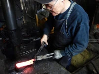 Jedes dieser traditionellen japanischen Kochmesser wird einzeln von Meister Toshiki Nanbu geschmiedet. Nanbu san, geboren 1940, ist Schmiedemeister der dritten Generation. Seine Kunst hat er von Yahichi Nanbu, erste Generation und Masamichi Nanbu, zweite Generation, gelernt. Geschmiedet wird in der traditionellen Schmiedetechnik von Echizen Takefu, die zum Ziel hat, die Messerklingen möglichst dünn zu schmieden und so leichte Messer mit sehr guten Eigenschaften zu bekommen. Die Suminagashi Serie weist ein einzigartiges Muster, man nennt es Tintenflussmuster, das durch die 11 Lagen entsteht und das Black Smith Finish im oberen Bereich der Klinge auf. Der Kohlenstoffstahl, aus dem die Serie geschmiedet wird, hat ca. 1,1% Kohlenstoff und ca. 0,3% Chrom. Alle Messer sind in einem Winkel von ca. 15° beidseitig geschliffen.