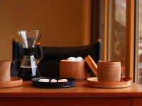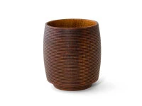 Diese Produktserie umfasst moderne japanische Becher, Schalen und Servier-Tablets die oft im Set als Speiseschalen, als Suppenschalen, Reisschalen, Müslischalen, für kalte und heiße Getränke und natürlich für die berühmte kleinen Leckereien, die zum Tee oder auch Kaltgetränken serviert werden, Verwendung finden. Begeistert schon die optische Ästhetik der wundervollen, handwerklich gefertigten Turari-Produkte, so ist man förmlich hingerissen, wenn man sie in den Händen hält. Das schöne Kirschbaumholz, die perfekt ausgewogene Form und die schmeichelhafte Oberfläche steigern den Genuss von feinen Getränken und Speisen. Der Designer Atsushi Sakai arbeitet seit Jahren mit Gato Mikio zusammen. Denn hier werden die Entwürfe handwerklich perfekt zu echten Produkten, die das Leben bereichern. „Kiji-Rokuro-biki“ nennt sich die traditionelle Bearbeitungstechnik, mit der in Yamanaka bei Gato Mikio Holzgefäße gefertigt werden. Schon beim Sägen wird ein besonderes Verfahren angewendet, das die Produkte resistenter gegen Verformungen macht. Die Kunsthandwerker arbeiten dann in exakt festgelegten Schritten mit speziellen Werkzeugen an der Formgebung.