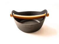Dieser wunderschöne Gusseisen Topf mit Tragehenkel aus edlem Holz kommt aus original japanischer Herstellung, Präfektur Iwate. Er wird in traditioneller, sehr hochwertiger, kunsthandwerklicher Produktionsweise – Nanbu Teki – aus bestem, ausgesuchtem Eisenerz von Hand hergestellt. Die unter Kennern bekannte Schmiede Kamasada achtet besonders penibel auf die beste Qualität der Rohstoffe und der Verarbeitung. Nanbu Teki ermöglich es, die weltweit wohl dünnsten und leichtesten Gusseisenprodukte mit hervorragender Wärmeleitfähigkeit und damit besten Kocheigenschaften und filigranem Design herzustellen. Sie werden vom unvergleichlichen Geschmack begeistert sein. Auch ihre Gesundheit profitiert, denn das natürliche Eisen dieses Kochgeschirrs beugt einem Eisenmangel bekanntlich wirkungsvoll vor. Die Gusseisen Produkte aus Iwate sind für alle Herdarten und sogar für offenes Feuer geeignet (Henkel ausgenommen). Mit etwas Pflege kann Sie dieser außergwöhnlich hochwertige und schöne Topf ein Leben lang begleiten. Die Handhabung ist einfach, nach kurzer Zeit entsteht ein Antihaft-Effekt durch die „gezüchtete“ Patina. Das moderne, minimalistische Design wurde von Nobuho Miya entwickelt, dessen Arbeiten mit dem „Good Design Award Japan“ prämiert wurden und ein fester Bestandteil der Sammlung des Museums of Modern Art New York sind. Gusseisen Kochgeschirr von Kamasada sind in der deutschen Edelgastronomie und weltweit sehr geschätzt.