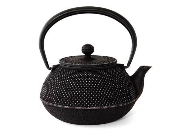 wird der Tee aufgegossen. Meist ist sie innen emailliert, was die Abgabe von Eisen und Mineralien, die im hochwertigen, japanischen Gusseisen vorhanden sind, bremst. Aber auch Emaille ist nicht vollkommen dicht, so dass Tee aus einer hochwertigen Iwachu-Teekanne einen reicheren Geschmack erhalten wird. Minderwertige Kannen sollte der Teekenner aus geschmacklichen und gesundheitlichen Gründen meiden. Achten Sie deshalb darauf, dass die Teekanne mit dem Original-Stempel von Iwachu oder anderen hochwertigen Herstellern ausgestattet ist.